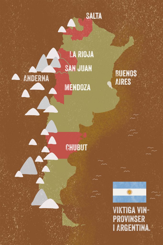 Anderna bidrar till ett gynnsamt klimat för vinodling. De varma provinserna Mendoza och San Juan producerar mest vin.